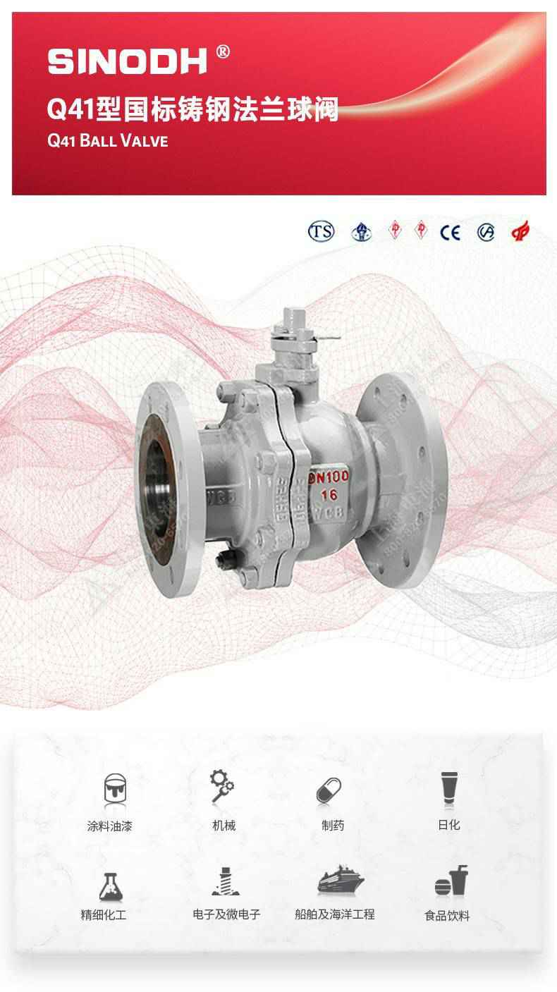 Q41型国标铸钢法兰球阀,为开云app官方在线入口-开云(中国)自主研发生产。本产品设计制造标准符合GB/T12237、GB/T12224标准。该产品的球体在介质压力作用下球体能产生一定的位移并紧压在出口端的密封面上,保证出口端密封。适用于水、溶剂、酸和天然气等一般工业介质也适用于工况恶劣的介质,如氧气、过氧化氢、甲烷和乙烯等介质。